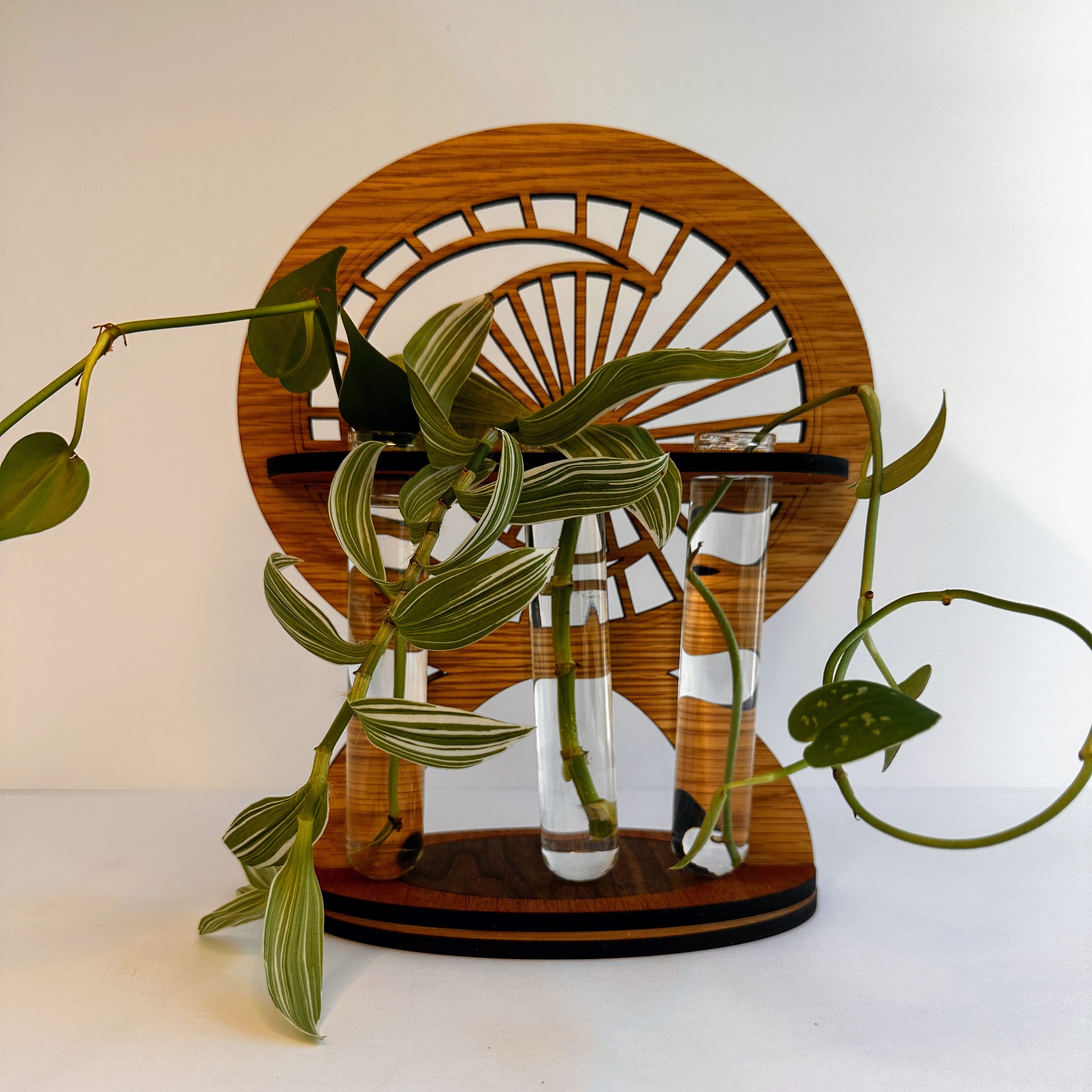 Handcrafted Wooden Plant Propagation Station | Nature-Inspired Floral & Geometric Designs | Oak or Walnut